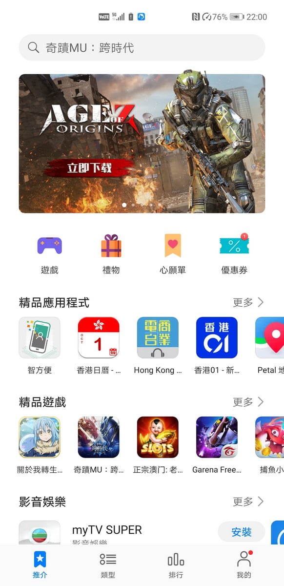 華為 Mate 40 Pro 並不像一般 Android 機,使用 GMS 服務框架,內建的 HMS 服務框架,主要可用 華為 應用程式市場下載 Apps,但應用數目明顯比 Google Play Store 少。幸好用家還可以透過 Penta Search 功能,在主頁面直接搜尋 Apps,然後直接到第三方應用市場下載。