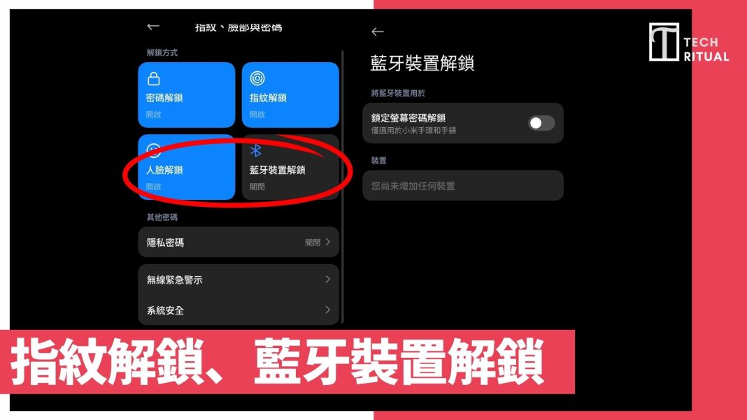 生物辨識解鎖、藍牙裝置解鎖