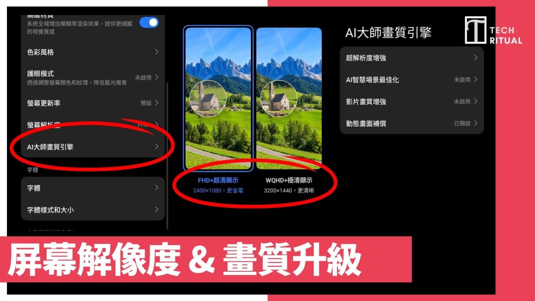 小米 15 Ultra 可以調整螢幕解像度,自關閉螢幕時間。為了省電,螢幕如果調整較低的解像度可以更省電,你可以進行設定,螢幕解像度,然後選擇解像度,也可以選擇「AI大師畫質引擎」,然後選擇超解析度增強、場景最佳化等,讓看影片時效果更佳。
