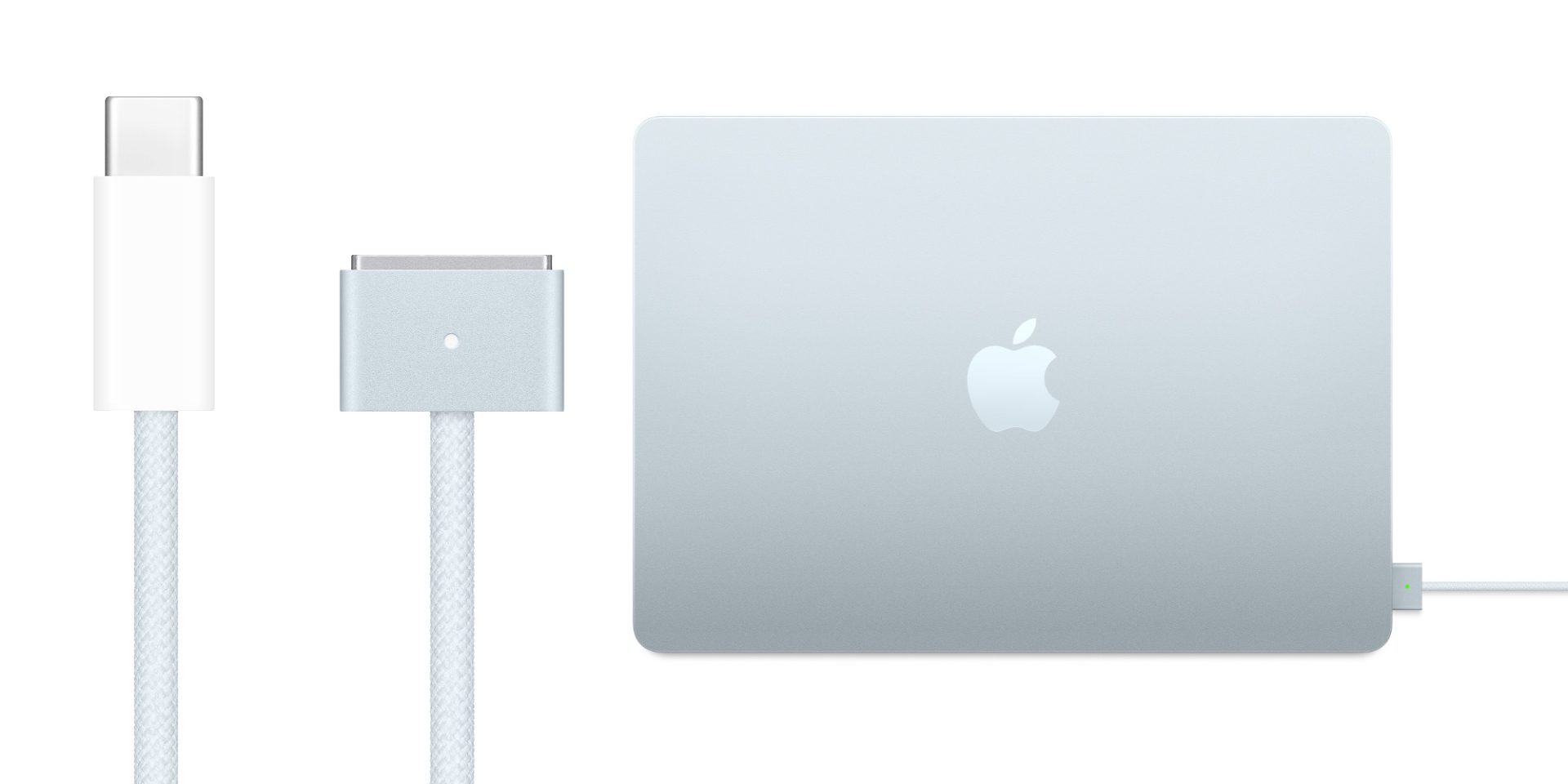 新一代的 MacBook Air 配備 M4 晶片,推出了全新的「天空藍」顏色。根據傳統,這款筆記本電腦隨附的充電線會與消費者選擇的顏色相匹配。即使不打算購買新的 M4 MacBook Air,仍然可以獲得一條天空藍的 USB-C 轉 MagSafe 3 充電線。