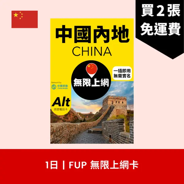 | 產品名稱 | Alt 中國大陸 (內地) 1日 FUP 無限數據電話卡 |