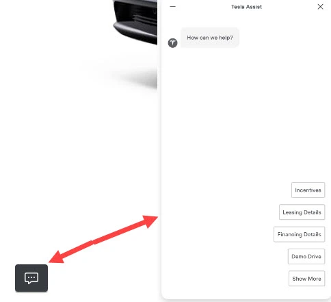 用戶可以通過位於 Tesla 網站底部的聊天泡泡訪問「Tesla Assist」。這個泡泡曾經連接到真人客服,現在則讓用戶能夠與 AI 助手互動,詢問有關 Tesla 產品、服務、車輛功能及支援的問題。用戶可以選擇預設主題,例如優惠、租賃和融資詳情,或點擊「顯示更多」以輸入自己的問題。準備去日本嗎?一定要保留這頁的「日本旅遊優惠券」:https://b4travel.shop/pages/japan-coupon。