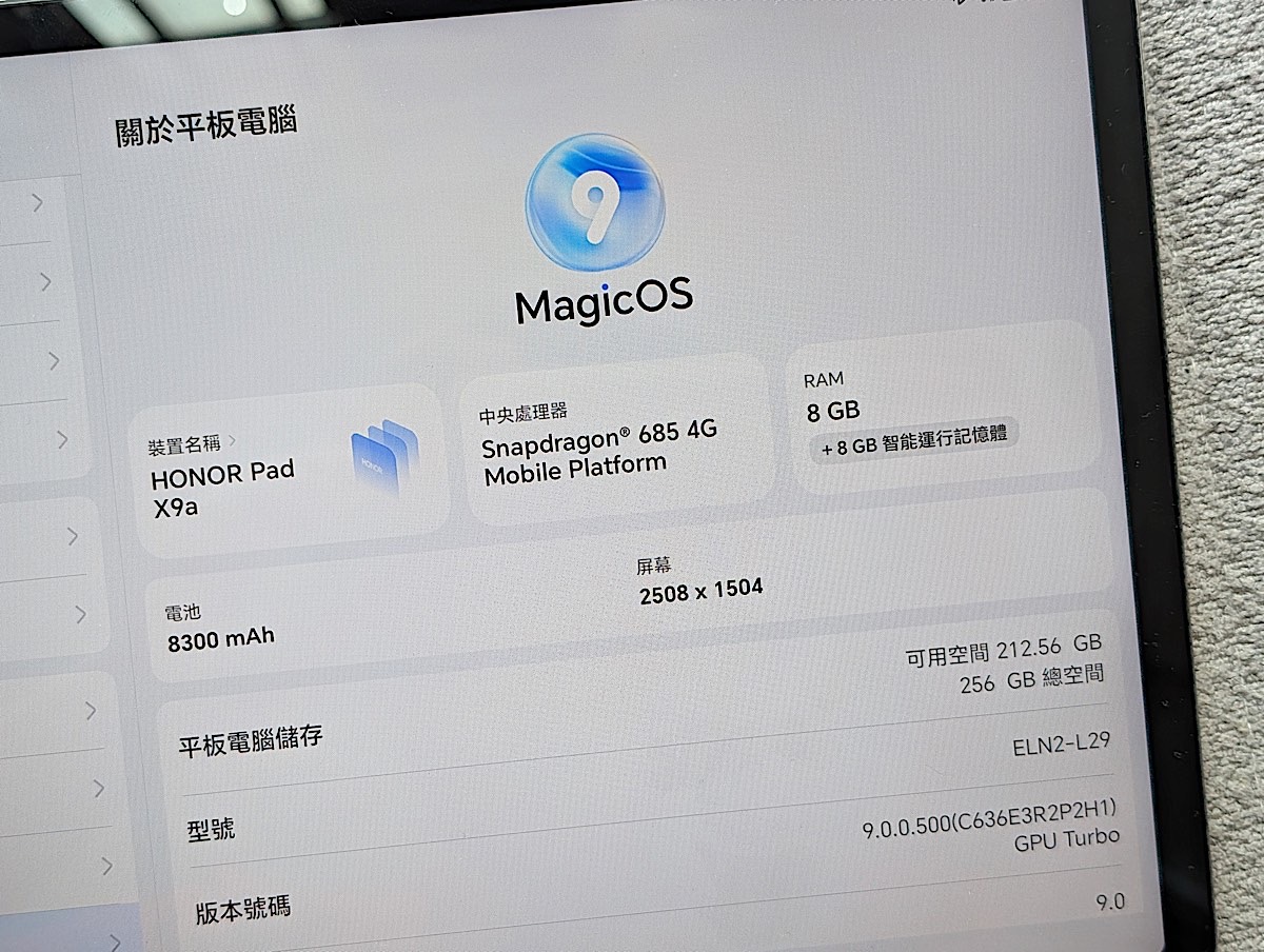 在實際使用中,Honor Pad X9a的聲音表現相當不錯,四揚聲器設計提供了立體聲效果,讓觀影體驗更加沉浸。操作流暢性方面,搭載的Snapdragon 685處理器與8GB RAM的組合能夠輕鬆應對日常任務,但在運行大型遊戲時可能會感到力不從心。連接穩定性良好,Wi-Fi和藍牙連接都非常穩定。8300mAh的電池容量在日常使用下能夠持續使用接近15小時,充電速度也相當理想。