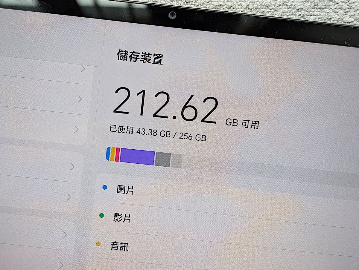 • 開機後,經過簡單設定後,256GB 儲存空間仍有 212GB 可以使用。