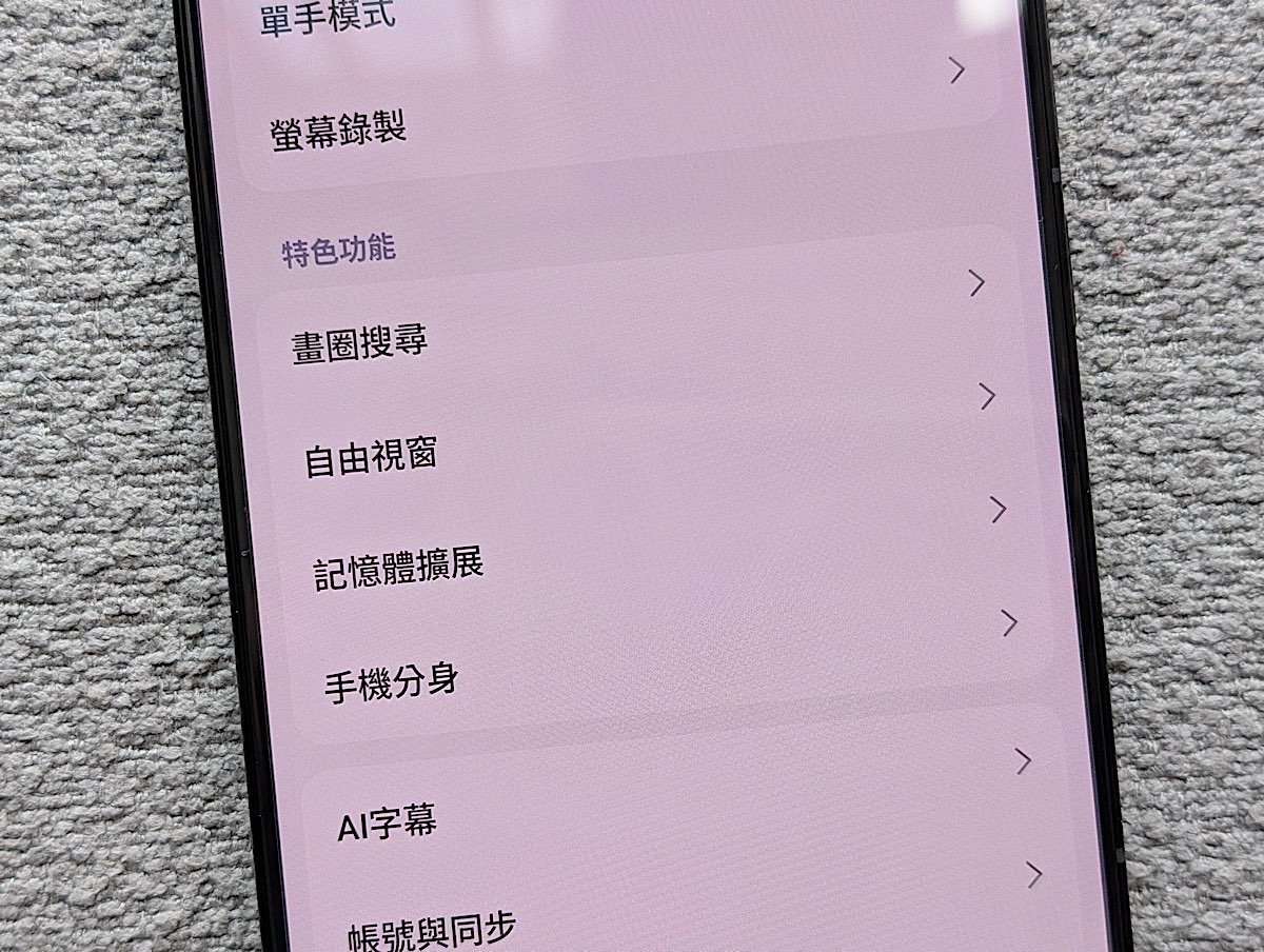 也有畫圈搜尋、手機分身、記憶體擴展等設定。