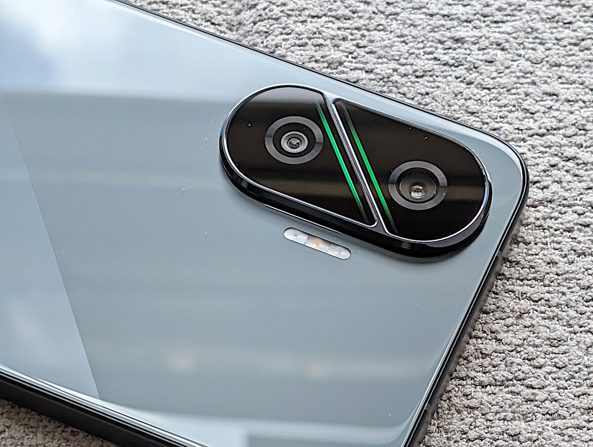 雙鏡頭設計中間有一個斜角對切設計,配上綠色線條