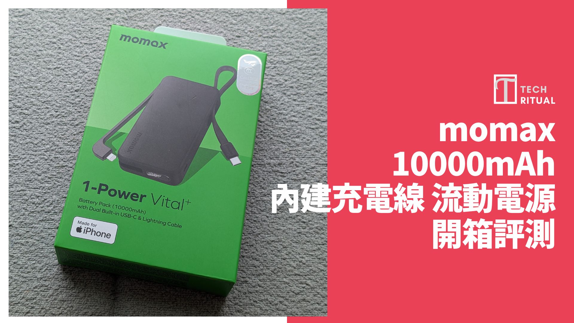 momax 1-Power Vital+ 10000mAh 內建 USB-C 和 Lightning 線 流動電源 (CCC 認證)