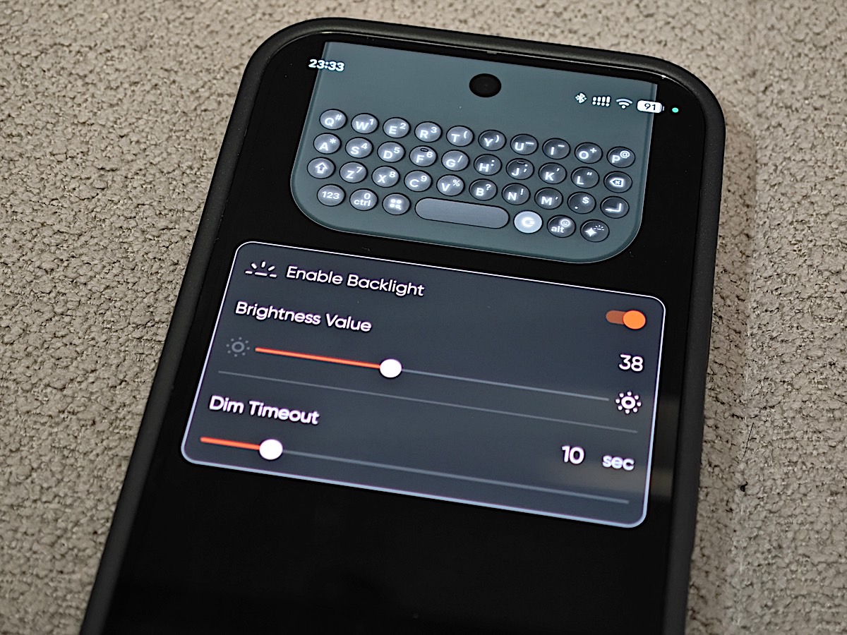 • 鍵盤可以配合背光在低光環境中使用,在 Clicks App 也可以選擇光亮度與背光時長。