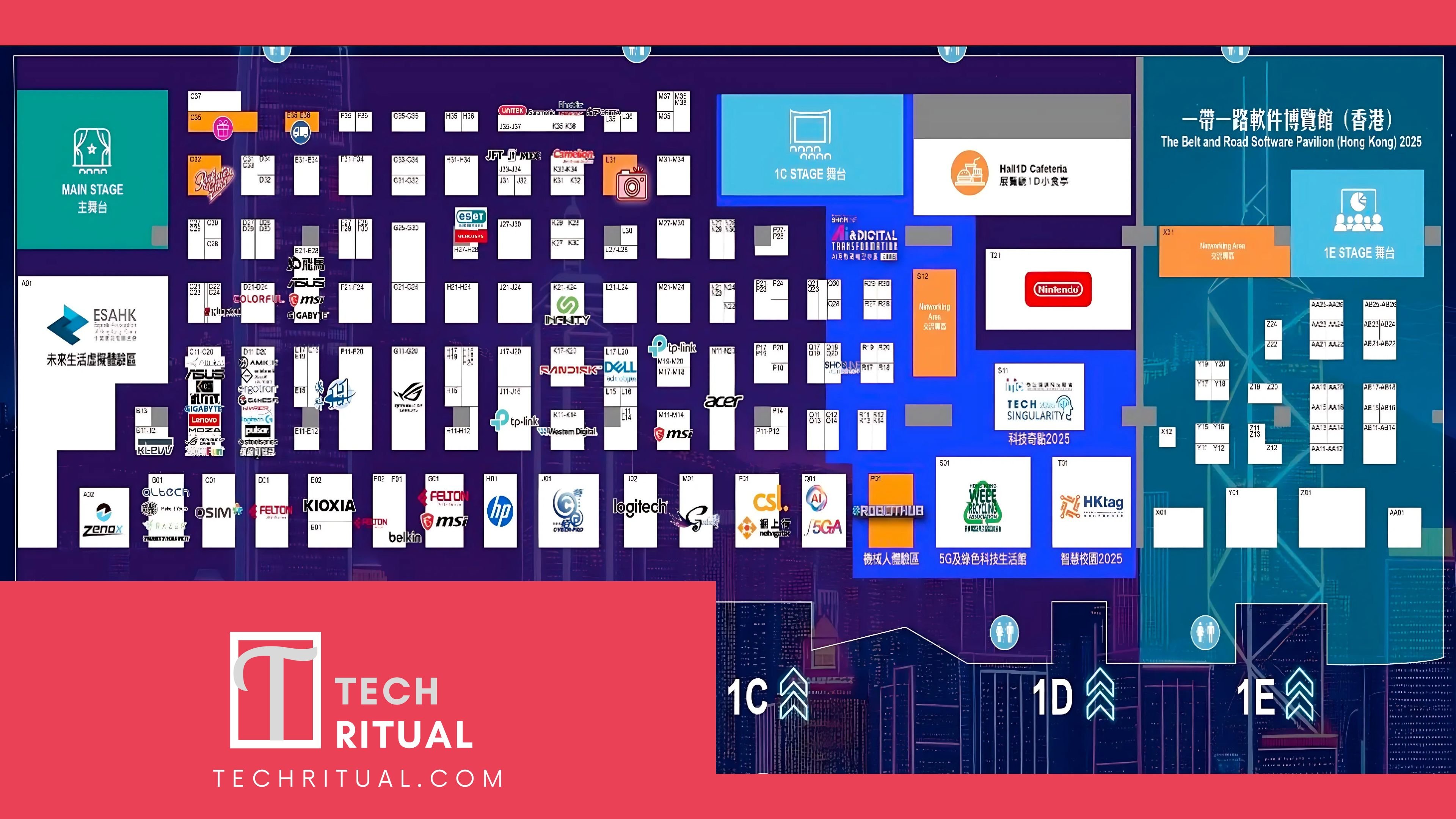 一踏入展場,首先映入眼簾的是左側最顯眼的綠色和紫色區域,這裡可說是為電競玩家量身打造的「性能區」。地圖顯示,一線電競硬體品牌呈集團式進駐。ASUS ROG、MSI、ZOTAC 和 Gigabyte AORUS 等品牌緊密相鄰。同時,Kingston FURY 等記憶體及儲存品牌也在此區設點,確保玩家能夠一次性備齊所有性能升級所需的零件。