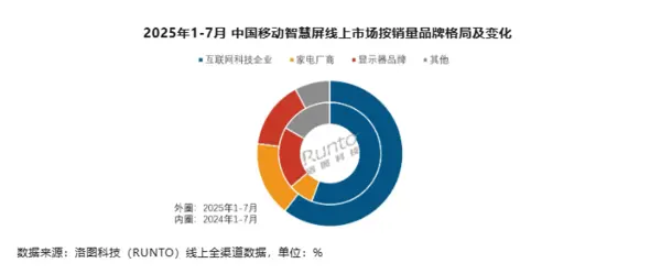 小米於8月21日推出了CarPal 24.5英寸“伴侶屏多功能便攜智慧屏”的眾籌項目,並同時發佈了自有品牌的智能家庭屏Max 27,正式進軍移動智慧屏市場。根據洛圖科技的數據,今年上半年,中國移動智慧屏市場的全渠道零售量與2024年同期相比增長了45.4%。以百度、天貓精靈為主的互聯網科技企業佔據了市場約60%的份額,而以海信、創維為主的家電廠商緊隨其後,數據顯示,2025年1-7月,家電廠商在線上全渠道市場的銷量份額為16.6%,同比增長了8.7個百分點。洛圖科技指出,小米結合了互聯網科技屬性及家電供應鏈資源,加上大模型超級小愛的支持,可能會對現有品牌格局造成較大影響。