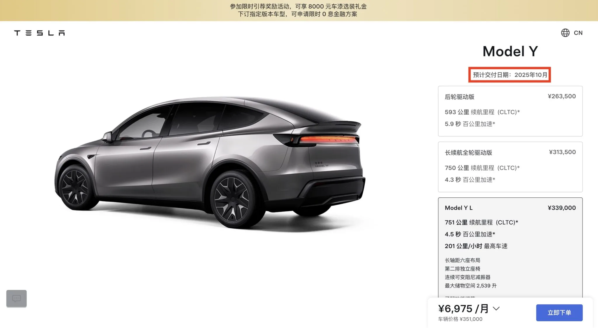 截至目前,Tesla 中國的訂單頁面顯示,如果今天下單,Model Y L 的最早交付時間將是 2025 年 10 月,這意味著六座 Model Y 版本在 9 月已經基本售罄。這為該車型的市場表現帶來了積極的預示,並暗示該車型有潛力提升 Tesla 在中國的銷售數字,以及未來出口到其他地區的可能性。