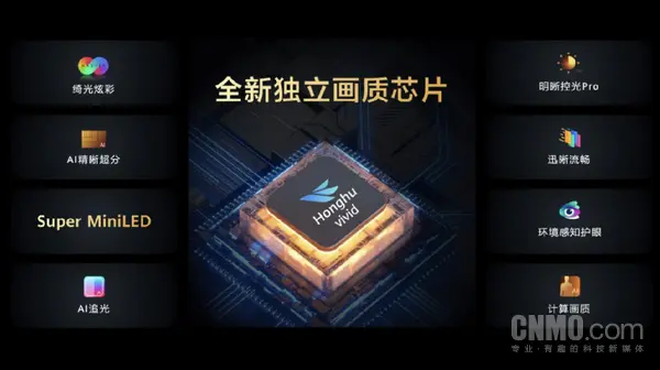 華為智慧屏MateTV在8月的2025華為智慧屏MateTV新品技術發佈會上介紹了多項創新技術。華為智慧屏MateTV搭載自研獨立畫質芯片鴻鹄 Vivid,其性能較前代提升300%。配合峰值亮度達5000尼特(110英寸版本)的Super Mini LED黑鑽屏與180W 3.2.2影院級聲場,實現從鏡頭捕捉到屏幕呈現的全鏈路高動態範圍顯示。此外,屏幕採用黑鑽全景臻彩技術,支持178°超廣視角與多晶量子點膜色彩還原技術,確保在任何角度觀看均呈現自然原彩畫質。
