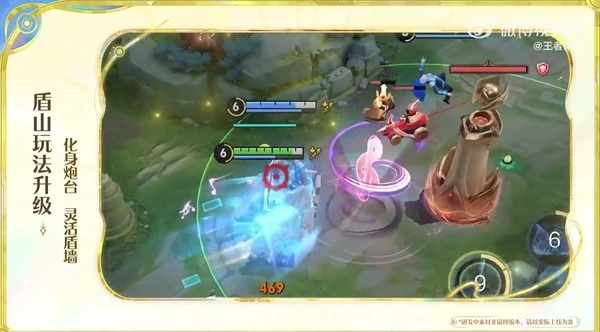 在英雄玩法調整方面,盾山將迎來重磅升級,這對輔助玩家來說無疑是福音。升級後,盾山的一技能可透過右搖桿蓄力瞄準托舉隊友,三技能釋放後會產生移動盾牆,盾山能自由行動,這將顯著提升其靈活性,更有助於在對線和團戰中的表現。