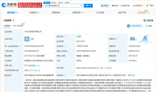 小米之家成立於2017年6月,註冊資本達1億元人民幣,經營範圍包括通訊設備銷售、計算機軟硬件及輔助設備批發等多個領域。根據股東信息顯示,該公司由小米通訊技術有限公司全資持股。
