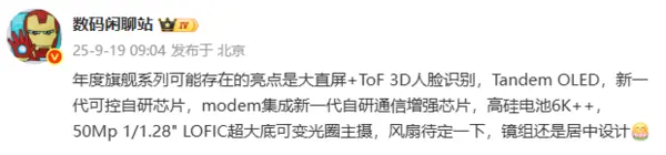 9月19日,有數碼博主爆料稱,疑似華為新款旗艦手機 Mate 80 系列的屏幕將採用雙層 OLED 技術,並且新機還將支持 3D 人臉識別。