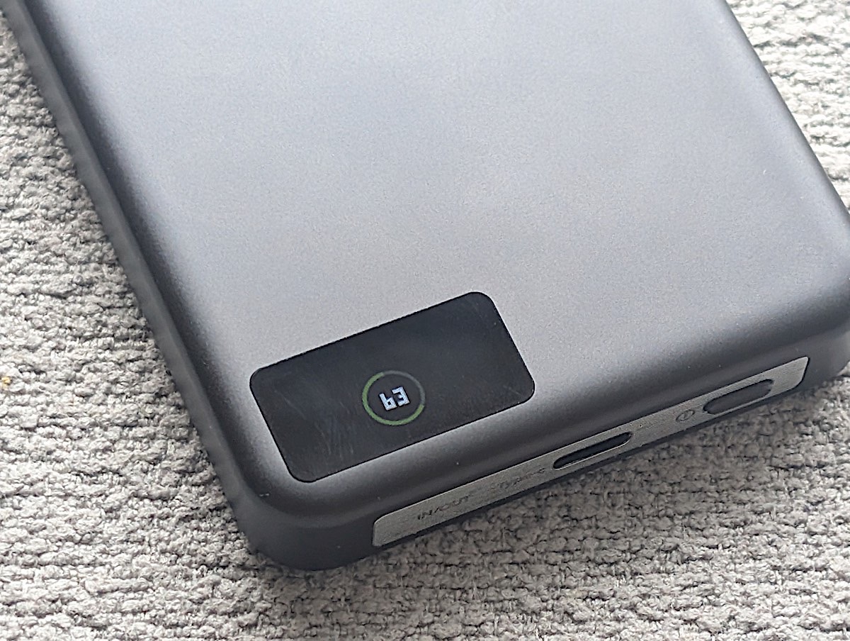 - 正面有一個小屏幕顯示電量比例