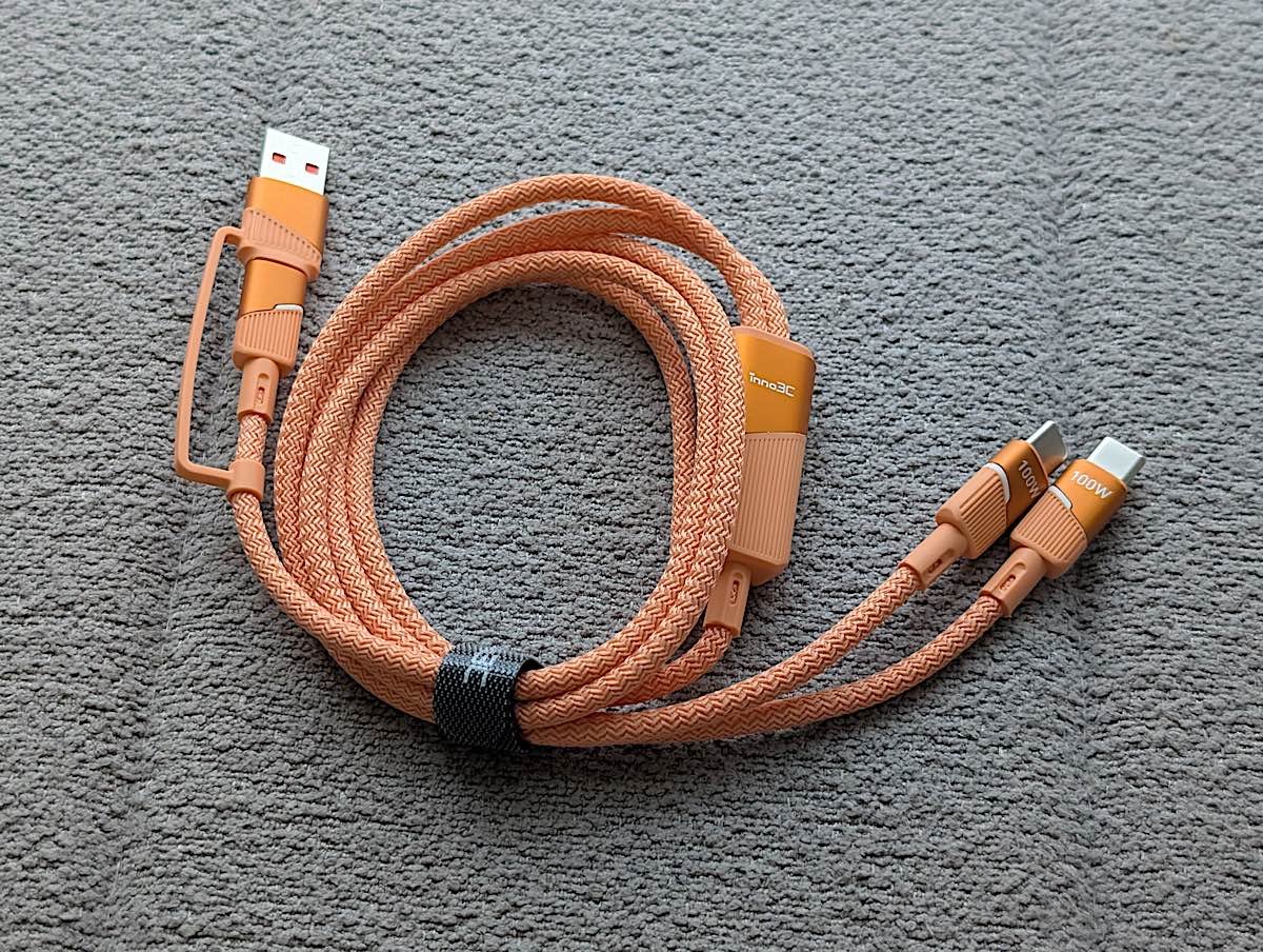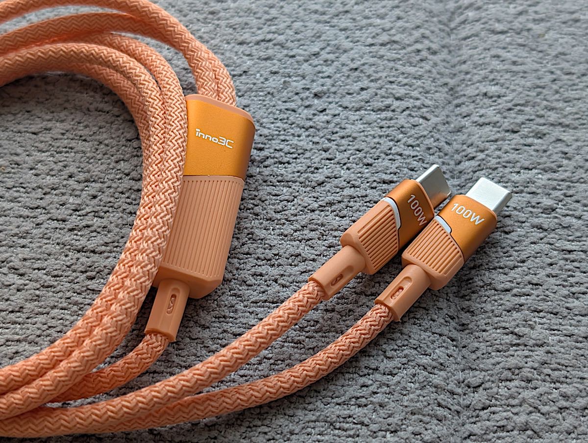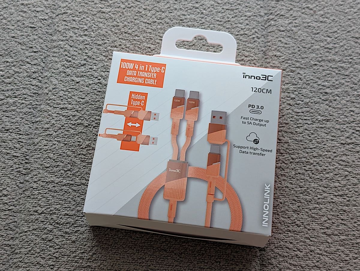 inno3C 4in1 100W Type-C 充電線以其多功能性和高效能,價格有點高,但智能設計和耐用材質無疑是其突出優勢,特別是輸入支援了 USB-A 轉插頭,日常會更適用。