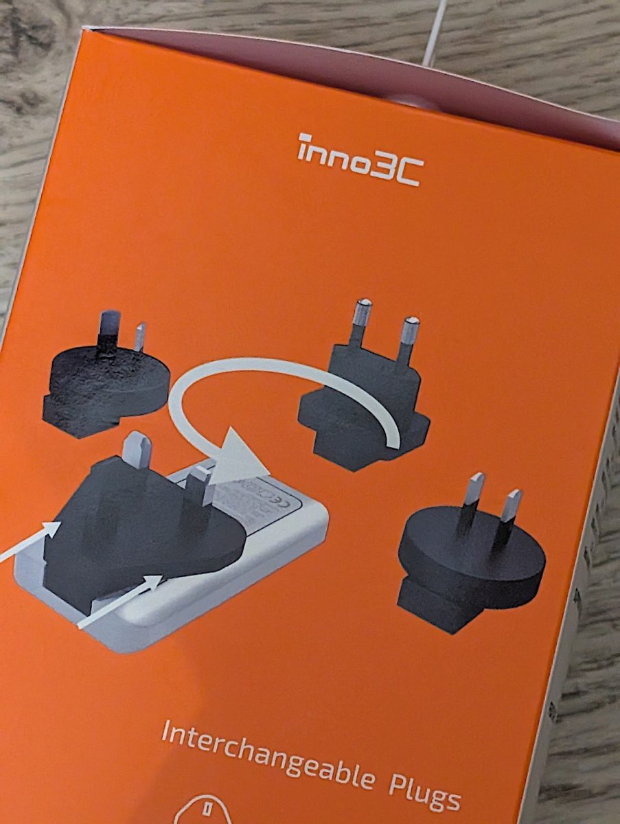 inno3C i-67DT 的包裝設計簡約而不失大方,內部配件包括充電器本體及多款可更換插頭,方便用戶根據不同地區需求進行選擇。充電器本體採用高質感塑料材質,手感光滑,顏色以典雅的黑色為主,顯得十分專業。整體設計上,充電器的弧邊設計不僅美觀,還能有效減少刮傷的風險。