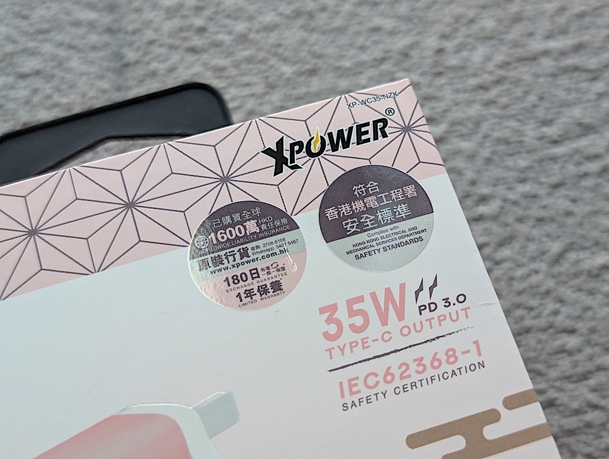 - 包裝上注明了支援 PD3.0 及 35W,並符合香港機電工程署安全標準
