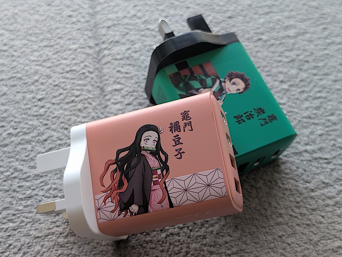 XPower x 鬼滅之刃 WC35 充電器其支援 PD 3.0 快充技術,能夠有效縮短充電時間。包裝方面,XPower x 鬼滅之刃 WC35 的設計充滿動漫風格,鮮明的顏色和角色插圖。充電器本身採用簡約的設計,黑色與白色的充電插頭位置以上,配合動漫角色
