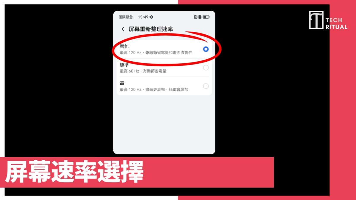 雖然 Honor 400 Smart 是懂得智能調節手機屏幕整理速率,但如果你希望手機屏幕的速率是固定的,你可以選擇屏幕重新整理速率,然後選擇「高」,就可以固定在高的屏幕速率。