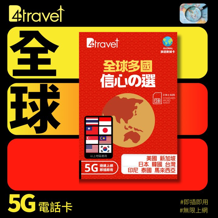 B4travel 全球多國 5000GB 5G 上網卡 (365日/年卡)