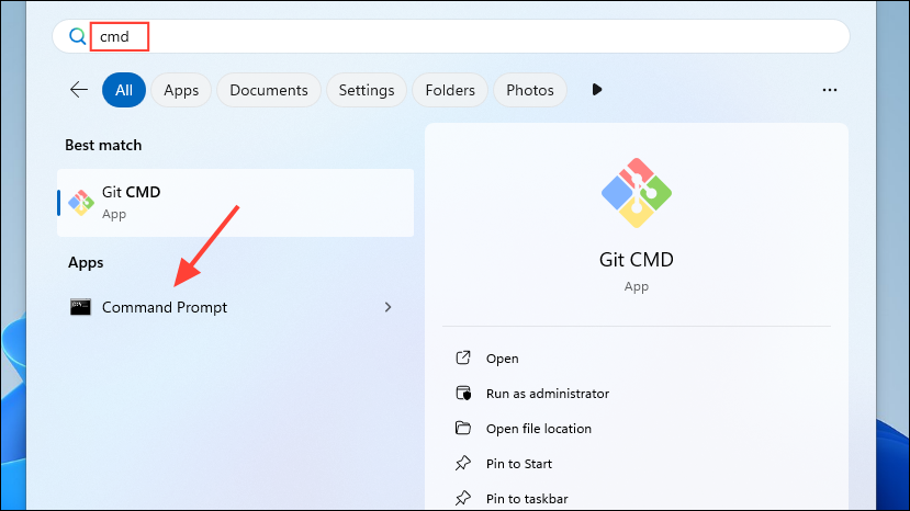 - 打開開始菜單,輸入 cmd,然後在搜索結果中點擊「命令提示符」。