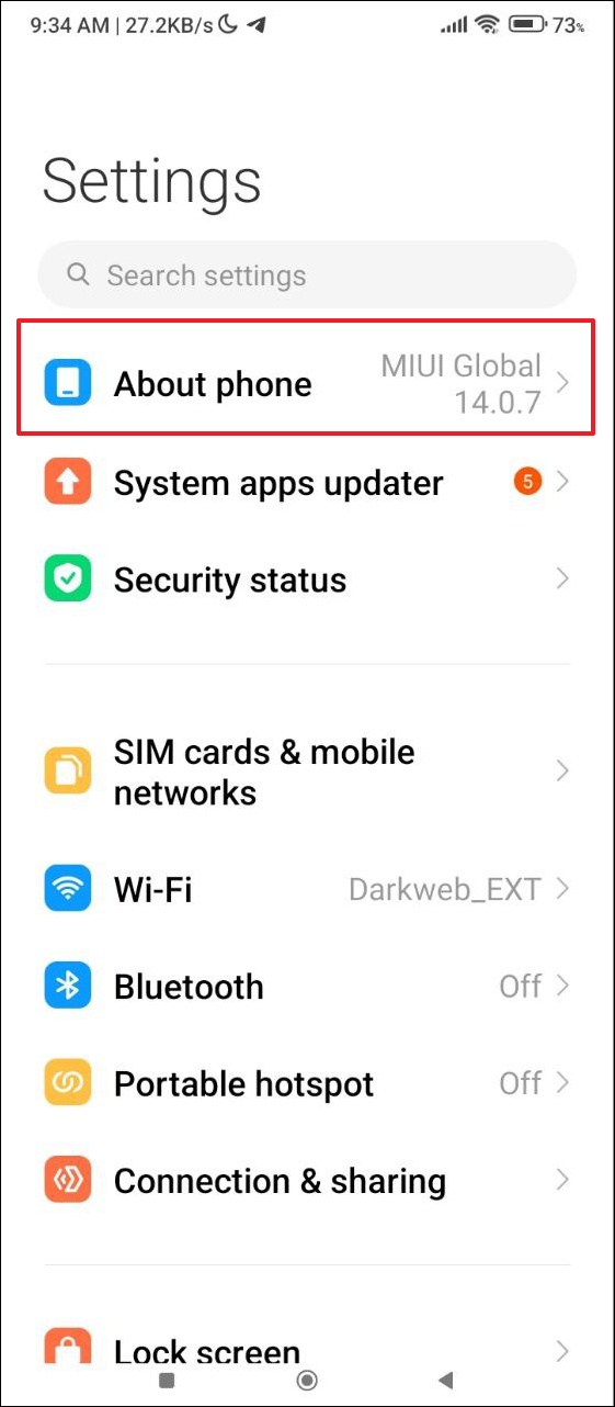 - 安裝 Scrcpy 後,需要在 Android 手機上啟用 USB 調試,然後再將其連接到電腦。打開設置應用程序,然後進入「關於手機」部分。