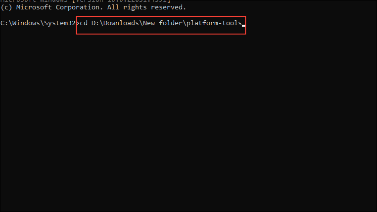 - 在命令提示符中輸入 cd PATH,將 PATH 替換為之前複製的地址,然後按 Enter 鍵。