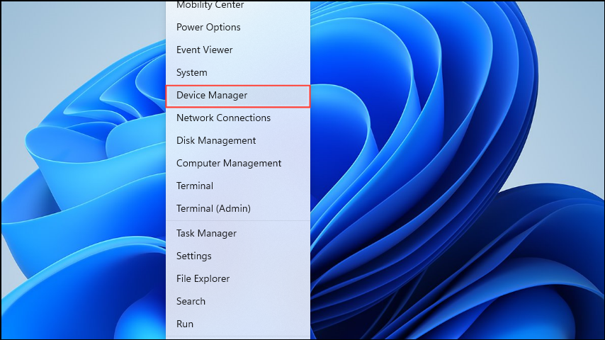 - 右鍵點擊開始按鈕,然後點擊「設備管理器」。
