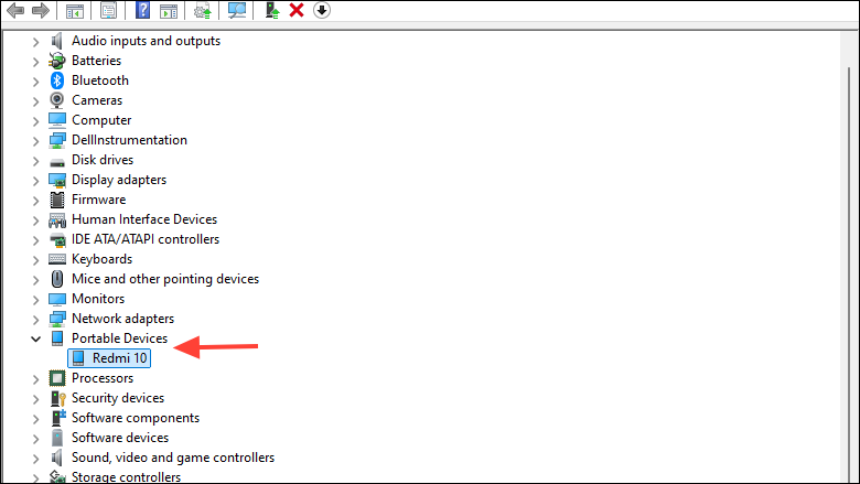 - 現在,在設備管理器中找到手機。它可能出現在「其他設備」或「可攜式設備」部分,請展開查看。