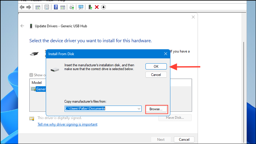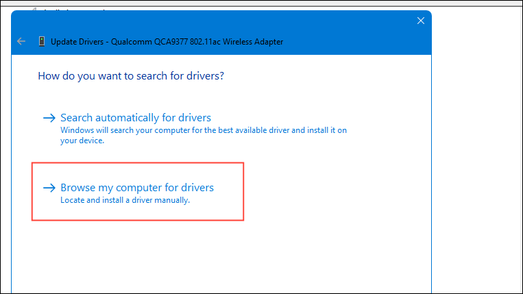 - 然後在彈出的窗口中點擊「在我的電腦上瀏覽驅動程式」。