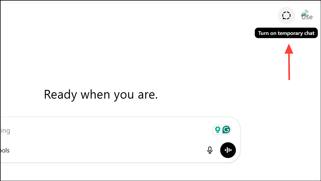 步驟 5:對於不希望被記住的對話,使用臨時聊天。這個功能像瀏覽器的隱身模式一樣——聊天不會被保存,且不會創建或引用新的記憶。從 ChatGPT 主屏幕的右上角訪問臨時聊天