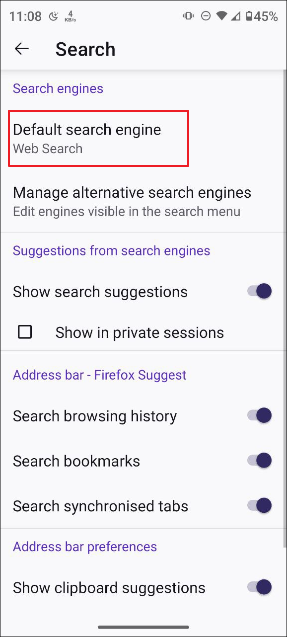- 然後點擊「默認搜索引擎」。