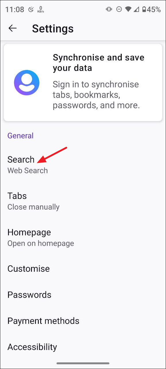 - 您可以隨時通過打開設置頁面來更改默認搜索引擎,選擇其他選項,如 Google、DuckDuckGo 等。