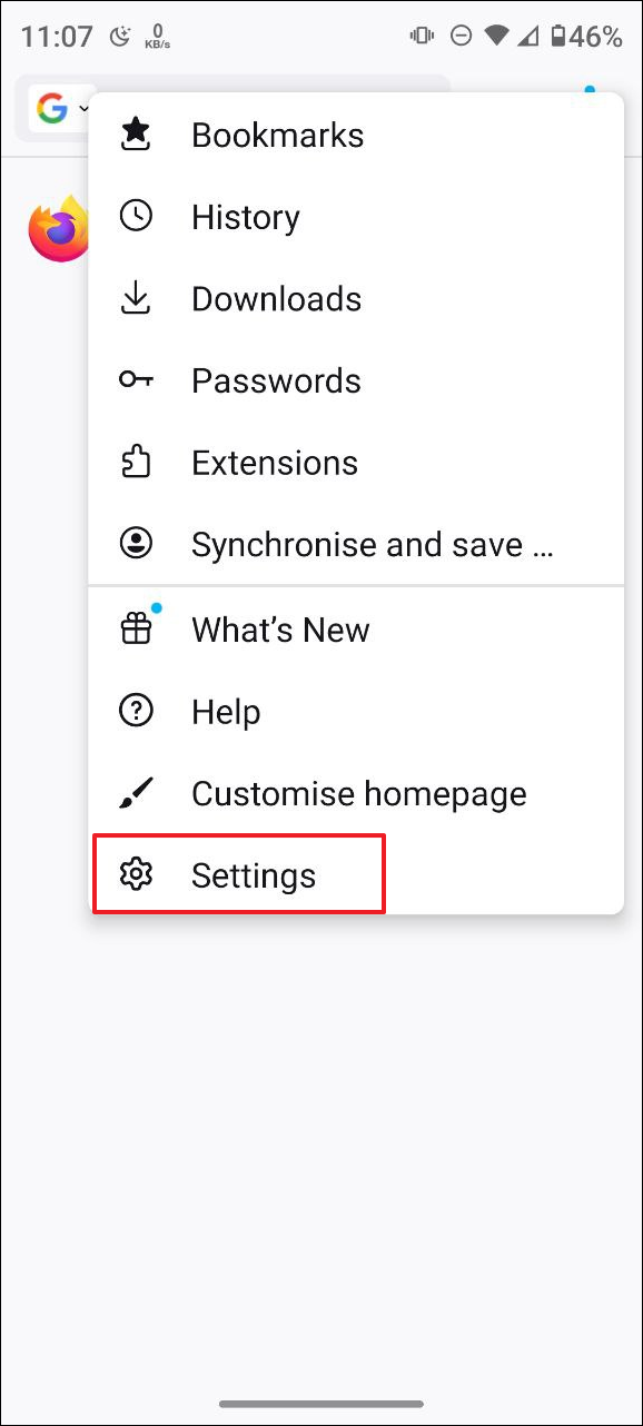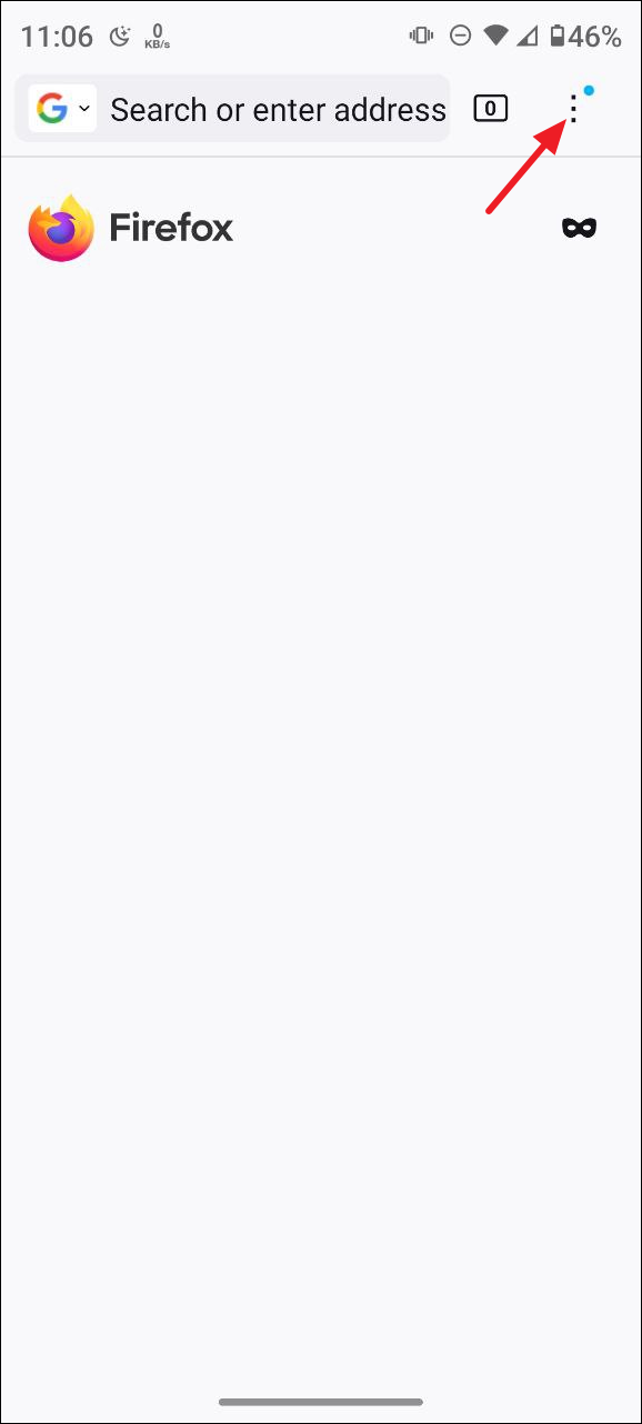 - 在 Android 上打開 Firefox,然後點擊右上角的三個點。