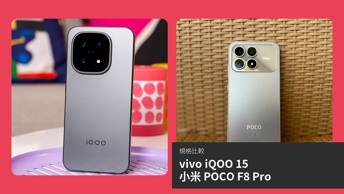 【手機比較】vivo iQOO 15 與 小米 POCO F8 Pro:規格表、效能、攝影功能