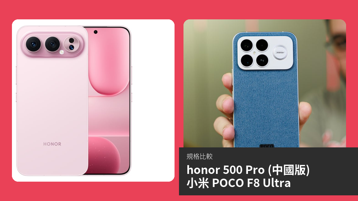 【手機比較】honor 500 Pro (中國版) 與 小米 POCO F8 Ultra:規格表、效能、攝影功能
