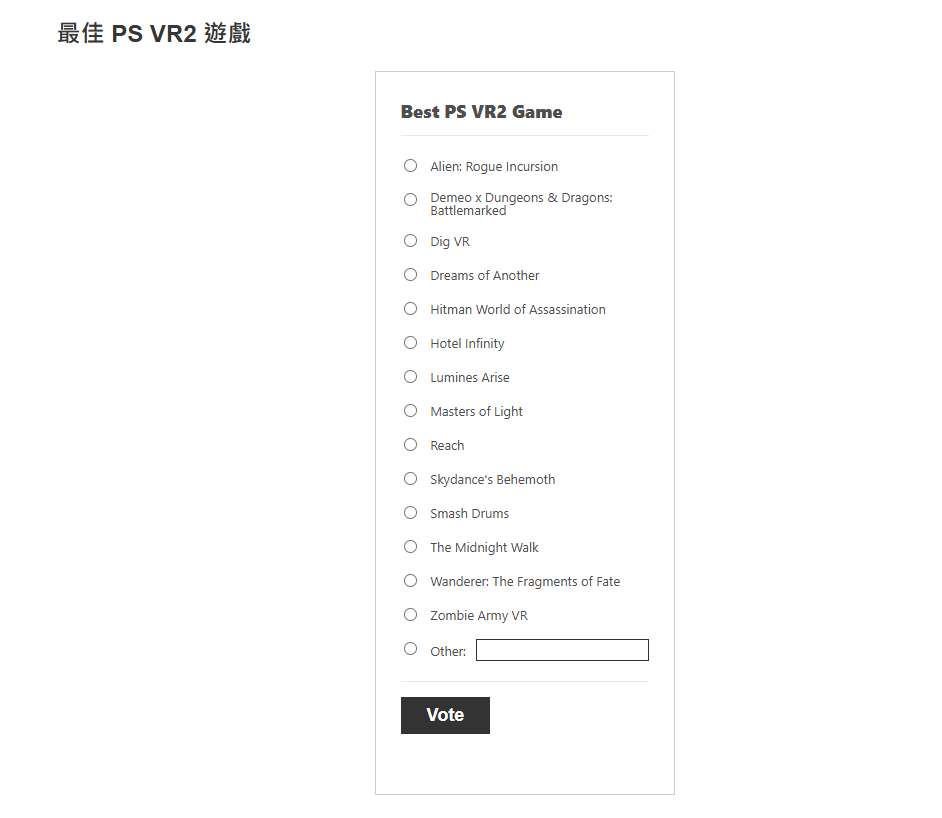 最佳 PSVR 2 遊戲投票開放
