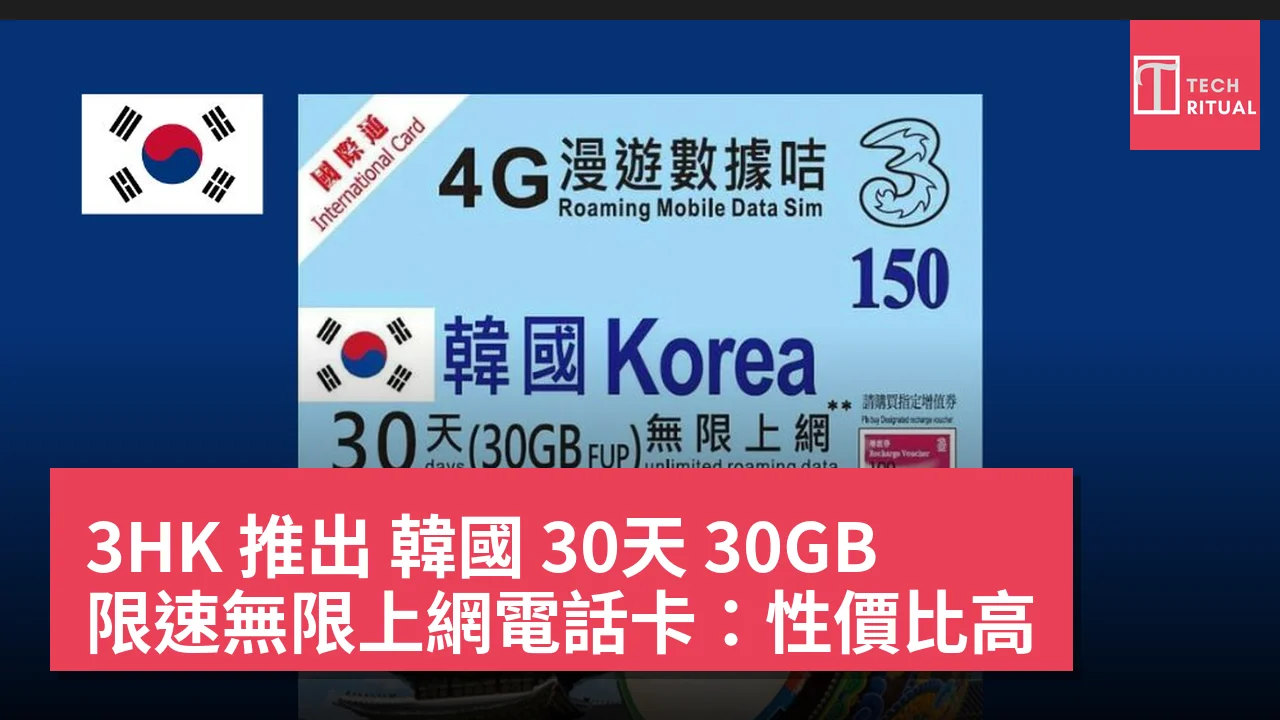 3HK 推出 韓國 30天 30GB 限速無限上網電話卡:性價比高