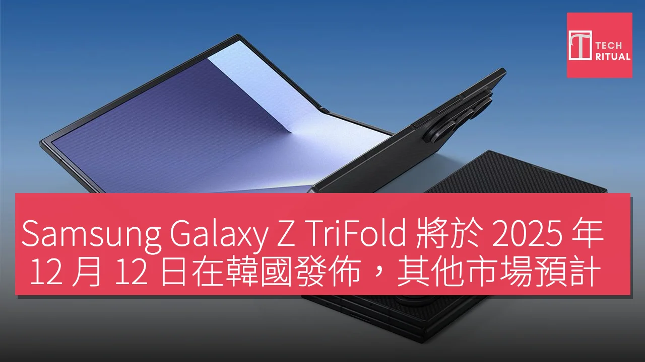 根據最新消息,Samsung 的 Galaxy Z TriFold 將於 2025 年 12 月 12 日在南韓首度發佈。這款可摺疊手機將會在未來進一步進入其他市場,包括中國、台灣、新加坡、阿聯酋及美國,但具體的發佈日期尚未確定,僅表示將於 2026 年第一季推出。