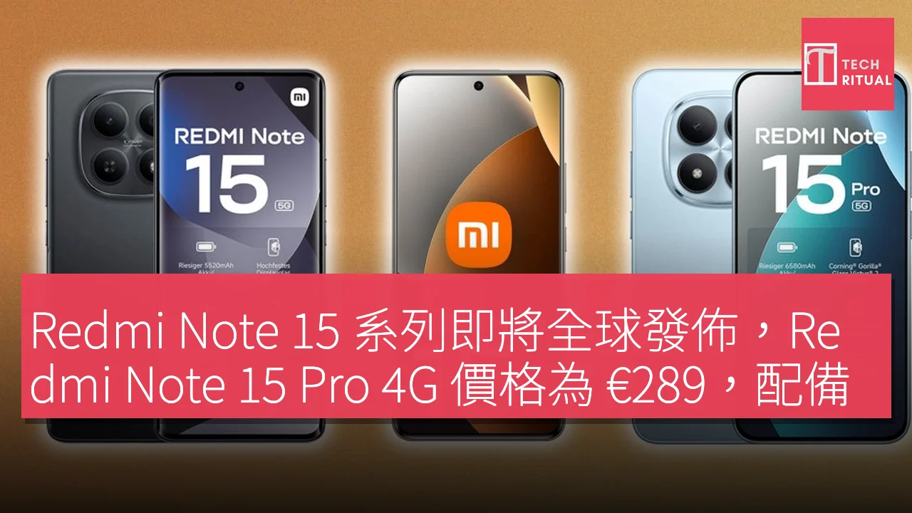 Redmi Note 15 系列即將全球發佈,Redmi Note 15 Pro 4G 價格為 €289,配備 8GB RAM