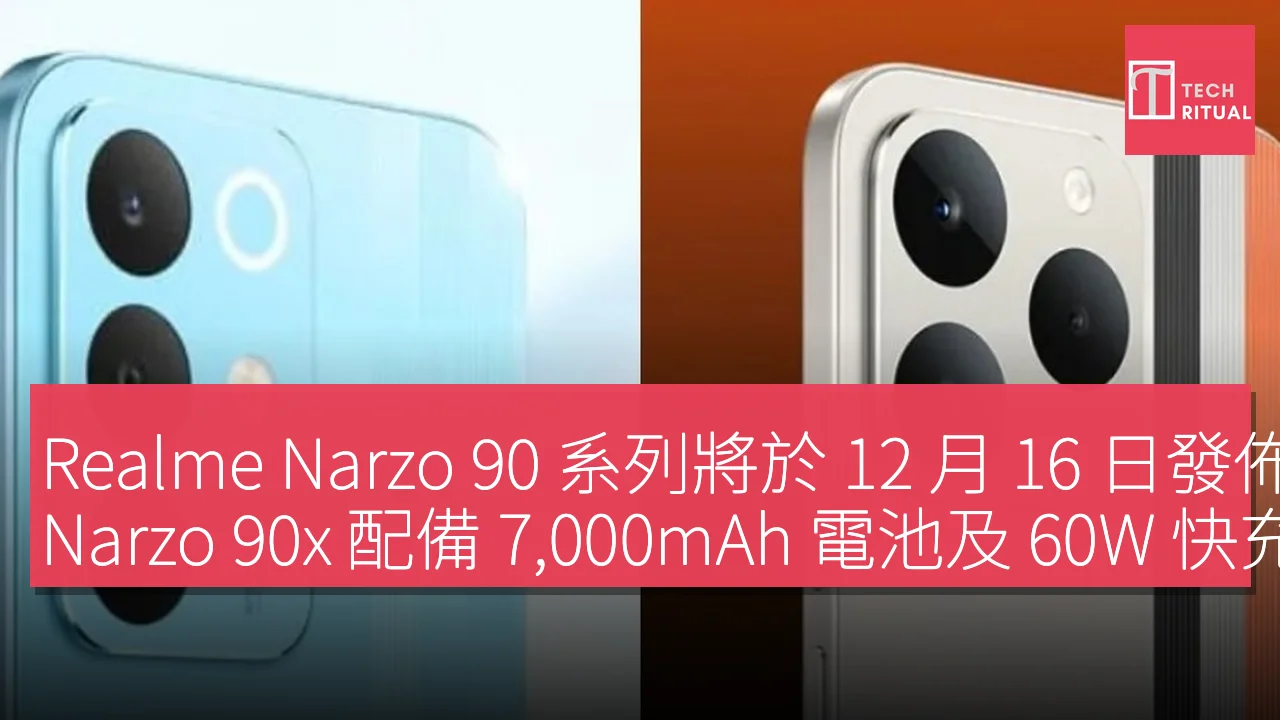 Realme 最近公佈了即將推出的 Narzo 90 系列的主要規格,該系列將於 12 月 16 日在印度發佈。Realme Narzo 90x 將配備 7,000 毫安時電池,以及 60W 快速充電功能。此款手機的顯示屏將支持 144Hz 刷新率,亮度可達 1,200 尼特。