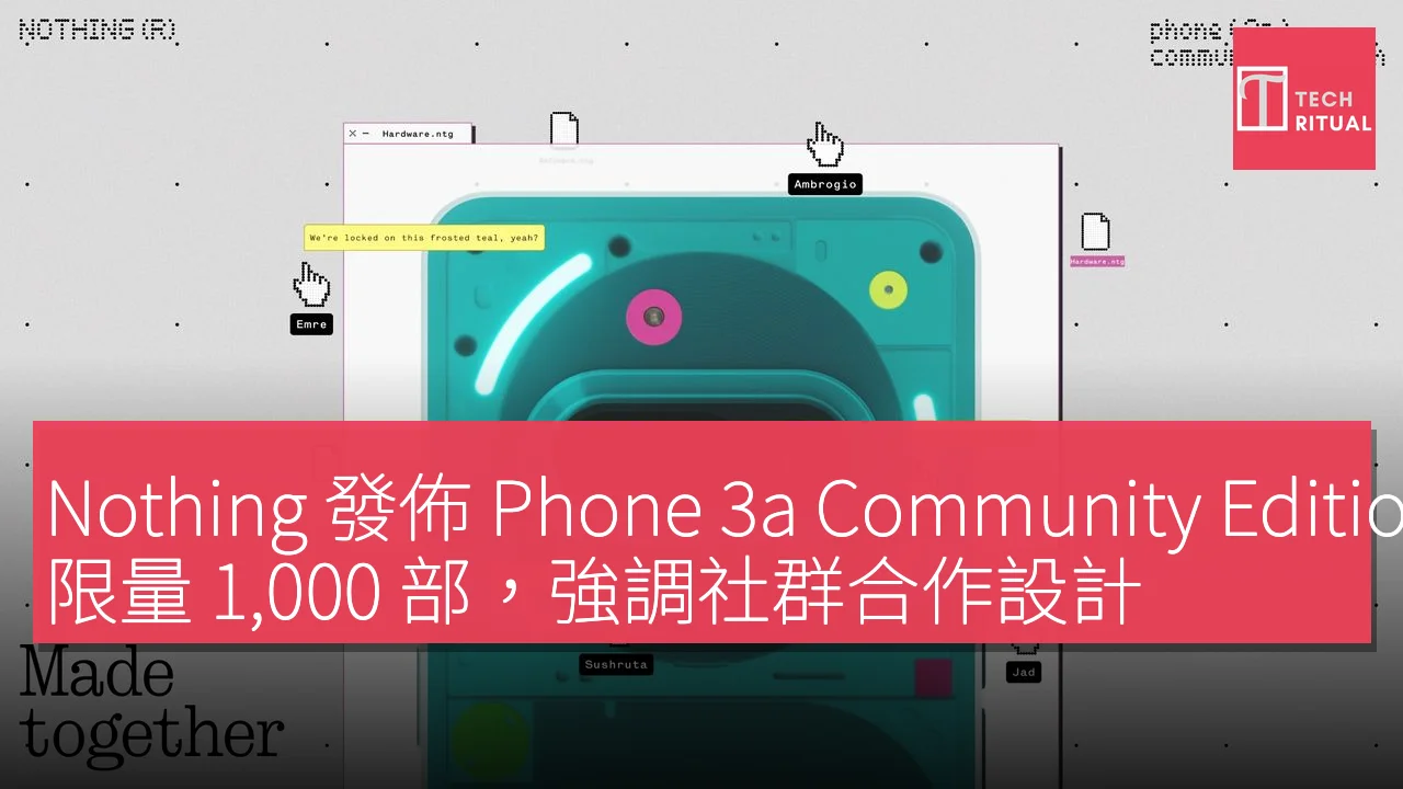 本週對於期待 Nothing 社群推出新手機的用戶來說,將是一個令人興奮的時刻,因為僅有 1,000 部可供購買。今天早上(12 月 9 日),Nothing 正式發佈了 Phone 3a Community Edition,這款手機的開發歷時九個月,並且與四位活動創作者共同努力。這次發佈活動以「共同創作」(Made Together)為主題,Nothing 表示此活動旨在「慶祝設計過程和社群的合作精神」。