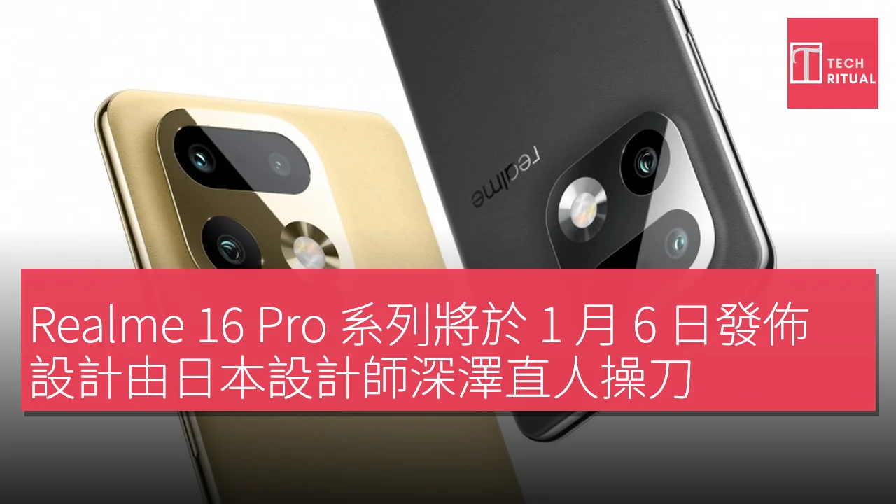 Realme 16 系列將於 1 月 6 日正式發佈,現在我們終於能夠看到其設計的首次亮相。Realme 16 Pro Master Gold 和 Master Grey 由日本設計師 Naoto Fukasawa 設計,這位設計師之前也曾負責過多款 Realme 手機的設計,包括 Realme X2 Pro Master Edition、X50 5G Master、GT Master 和 GT Explorer Master。