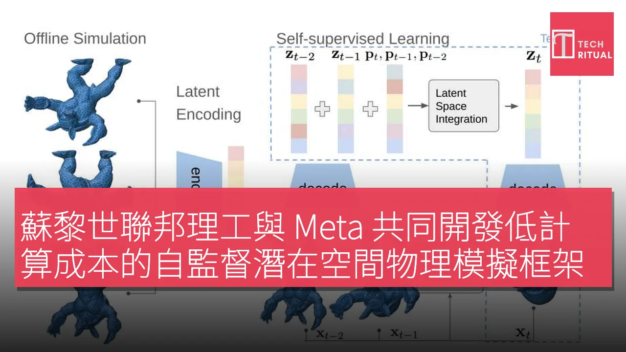 蘇黎世聯邦理工學院與 Meta Reality Labs 合作開發了一種新的潛在空間動力學模擬框架,該框架基於自監督學習技術,能以極低的計算成本實現彈性物體的即時物理模擬。此技術在保持高保真動態效果的同時,將計算效率提升了三個數量級,為虛擬現實等計算資源受限的場景提供了可行的解決方案。 物理模擬是構建逼真虛擬環境的核心技術,尤其在對彈性物體如頭髮、布料、軟體等的動態建模中至關重要。傳統基於有限元的模擬方法雖然能夠生成高質量的物理動畫,但其計算複雜度極高,往往需要在每個時間步驟中解決包含數千甚至數萬個自由度的非線性系統。即使是最先進的優化算法,也難以在普通 CPU 上實現即時運行。 子空間模擬方法通過將系統投影到低基上來減少計算負擔,提供了速度與通用性之間的有效折衷。然而,大多數現有方法在時間步進過程中仍需頻繁評估全空間能量及其導數,這種全空間評估需要大量的計算資源,阻礙了它們在計算能力有限的設備上的部署。即使採用子空間模擬方法,實現真正的即時性能仍然是個難以達成的目標。 針對上述問題,研究團隊提出了一種全新的兩階段框架,將動態模擬完全置於低潛在空間中執行,徹底擺脫了對全空間計算的依賴。在第一階段,團隊利用深度自動編碼器將高頂點位置數據壓縮到低潛在空間。