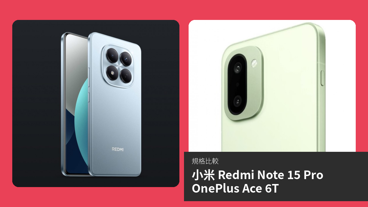 【手機比較】小米 Redmi Note 15 Pro 與 OnePlus Ace 6T:規格表、效能、攝影功能