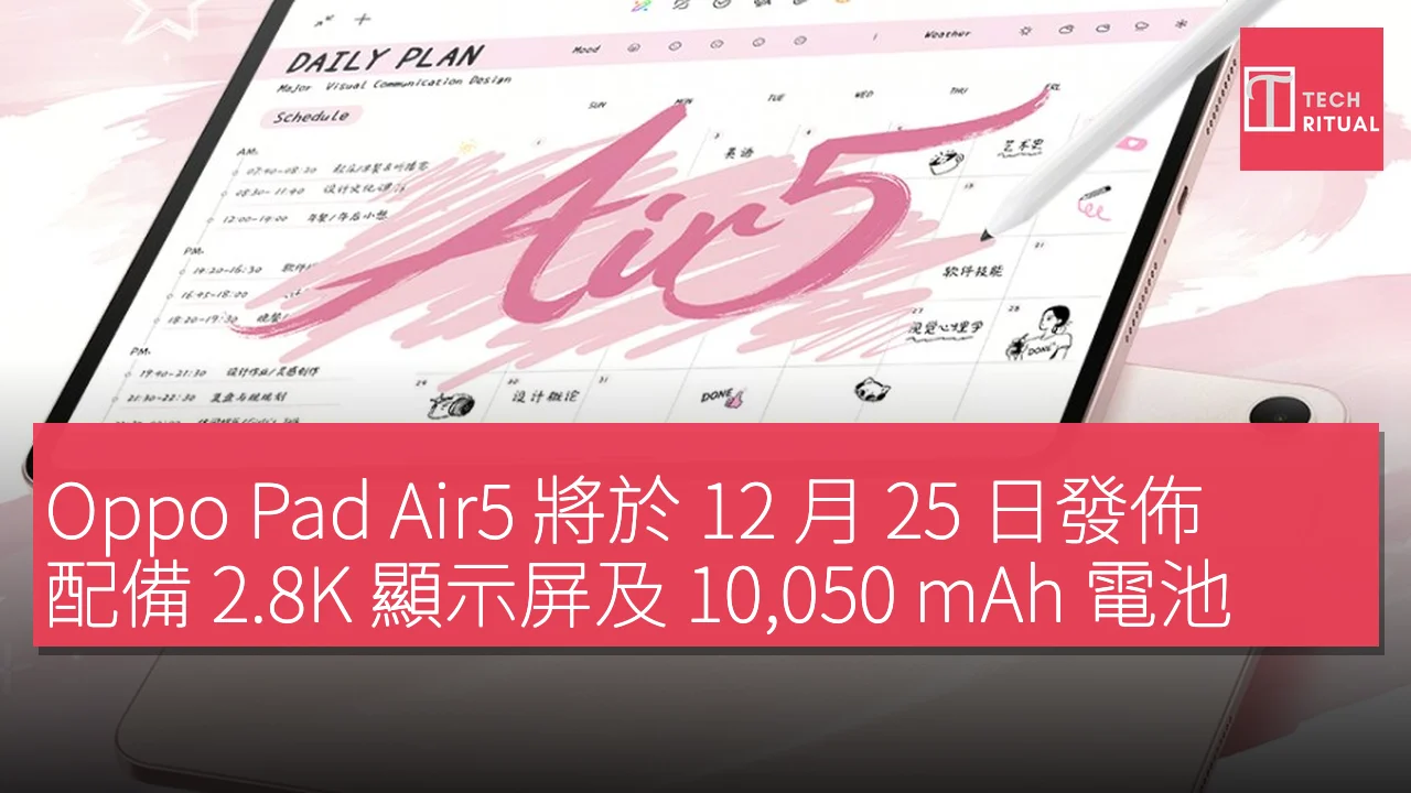 Oppo Pad Air5 將於 12 月 25 日發佈,配備 2.8K 顯示屏及 10,050 mAh 電池