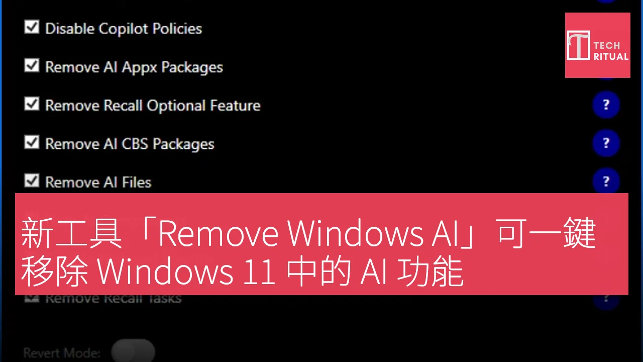 Windows 11 上,即便不少 AI 體驗在形式上是“可選”,用戶依然無法徹底擺脫所有 AI 元素,相關功能往往不可移除、到處可見,這也促使愛好者自行開發繞過方案。 據介紹,這款“Remove Windows AI”腳本托管在 GitHub 上,用戶只需運行命令並勾選希望移除或禁用的項目,即可對系統進行“去 AI 化”處理。開發者同時提醒,使用此類第三方腳本存在風險,用戶在操作前應做好重要數據備份。 腳本列出的功能清單顯示,其可通過修改註冊表鍵值、策略文件和系統組件配置來屏蔽或移除多項