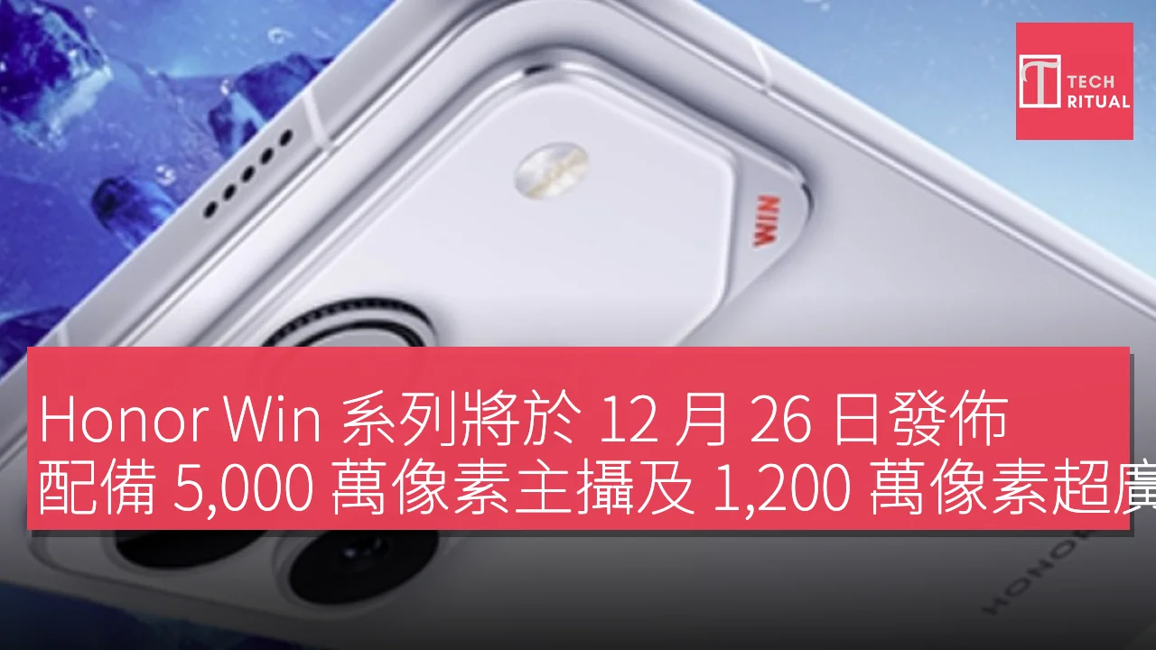 Honor Win 系列將於 12 月 26 日發佈,配備 5,000 萬像素主攝及 1,200 萬像素超廣角鏡頭